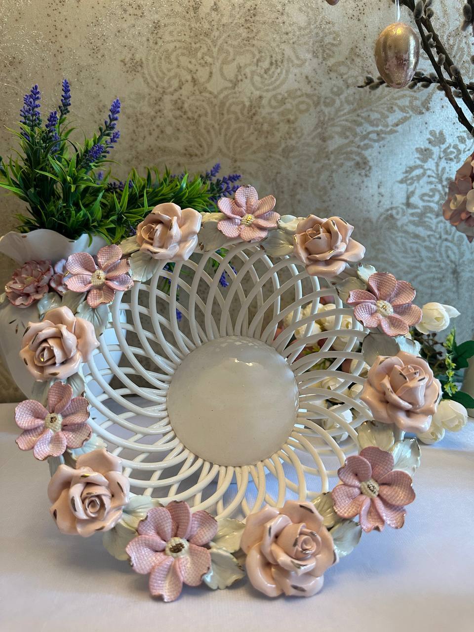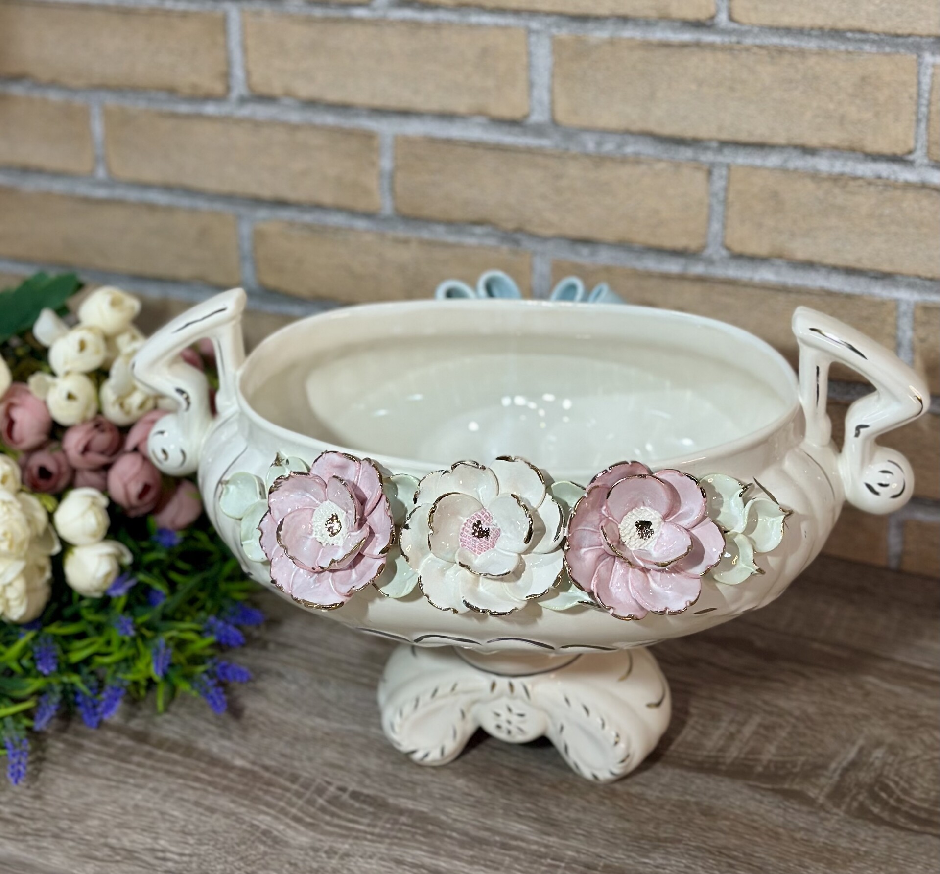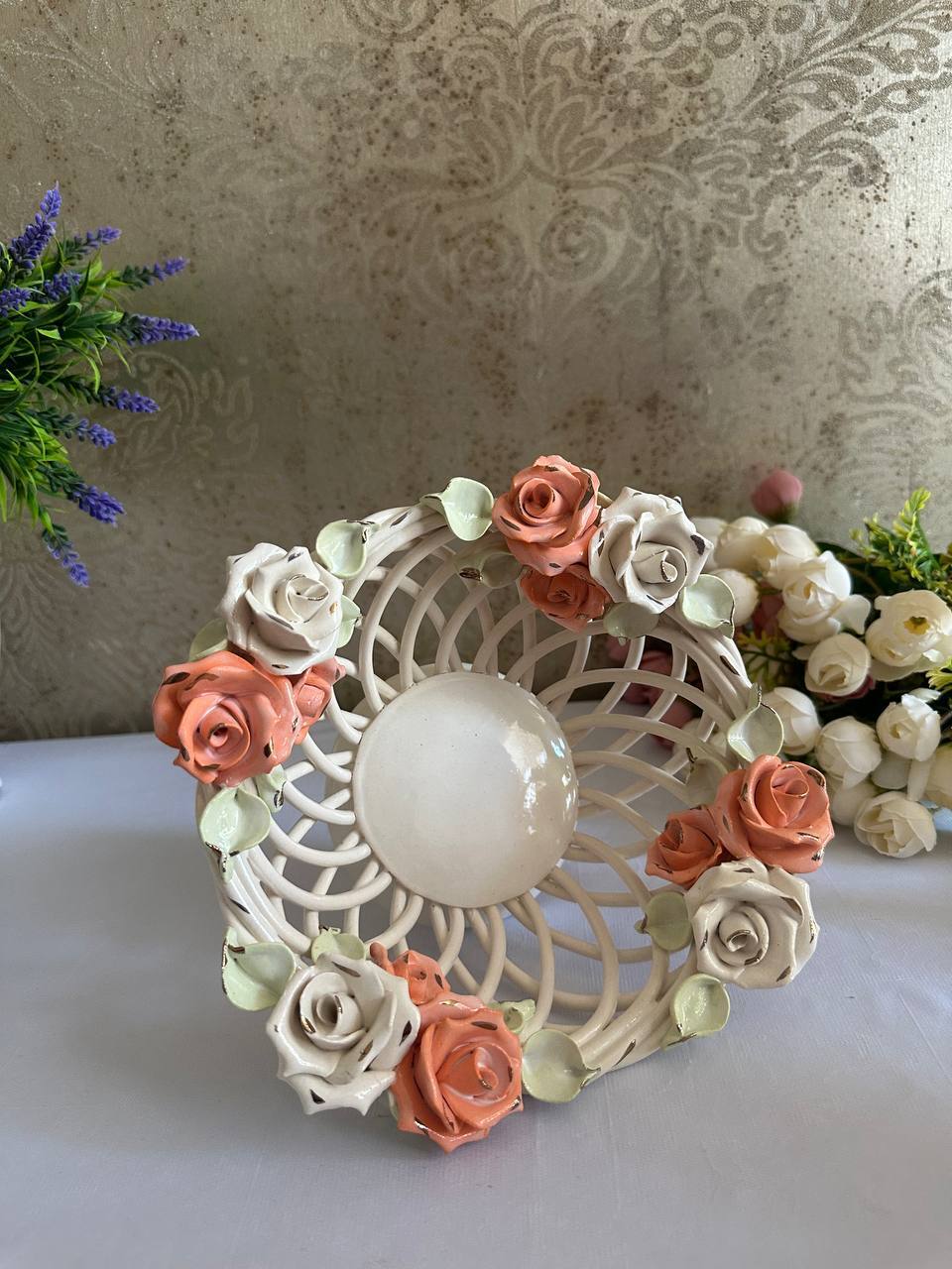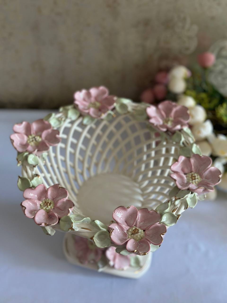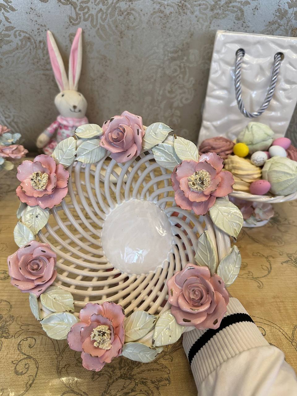 Цукерниця "Флорія" з елементами ручної роботи- справжній витвір мистецтва, створений з душею та натхненням. Ця фруктовниця стане вишуканою прикрасою вашого столу, надаючи йому ніжності та витонченості.