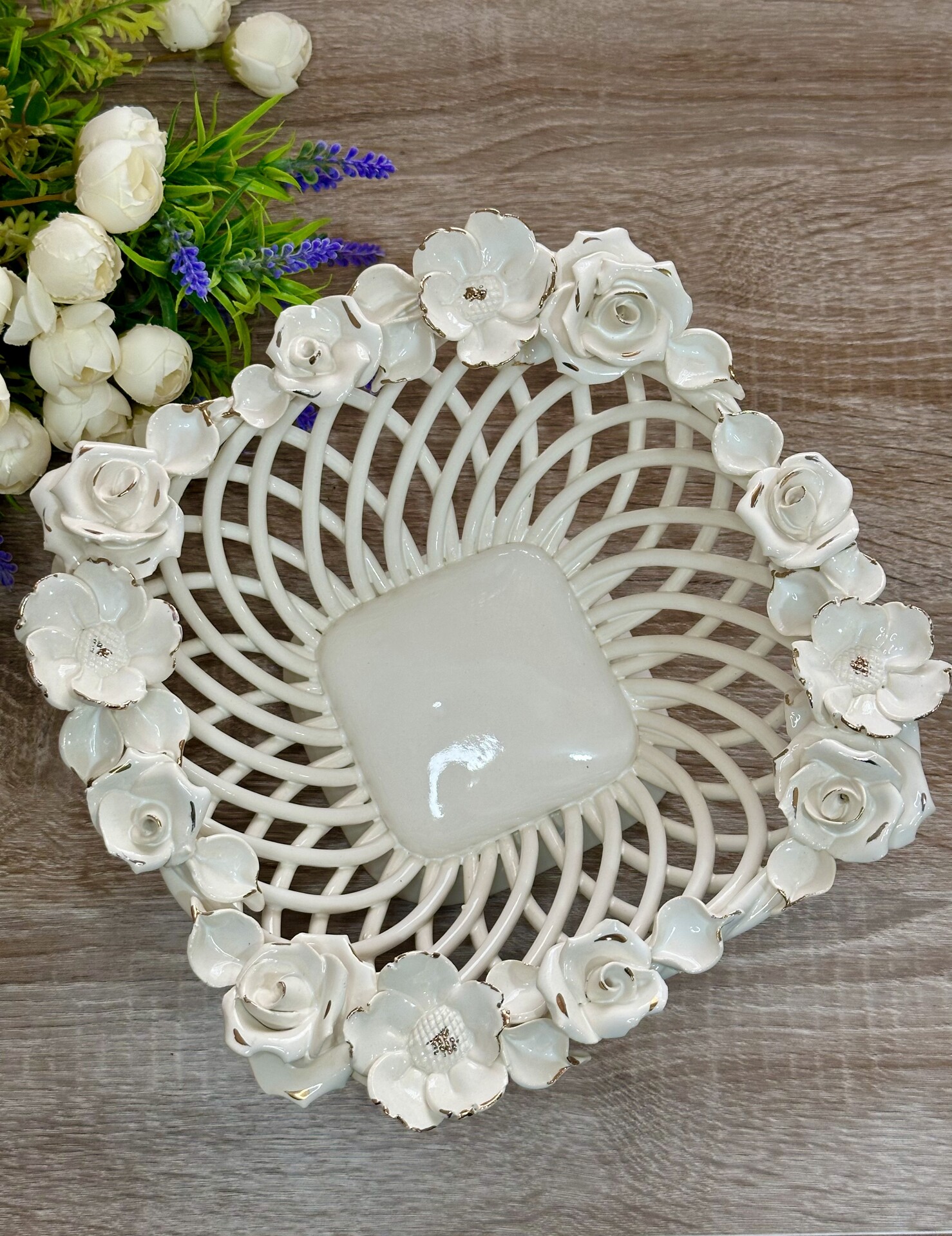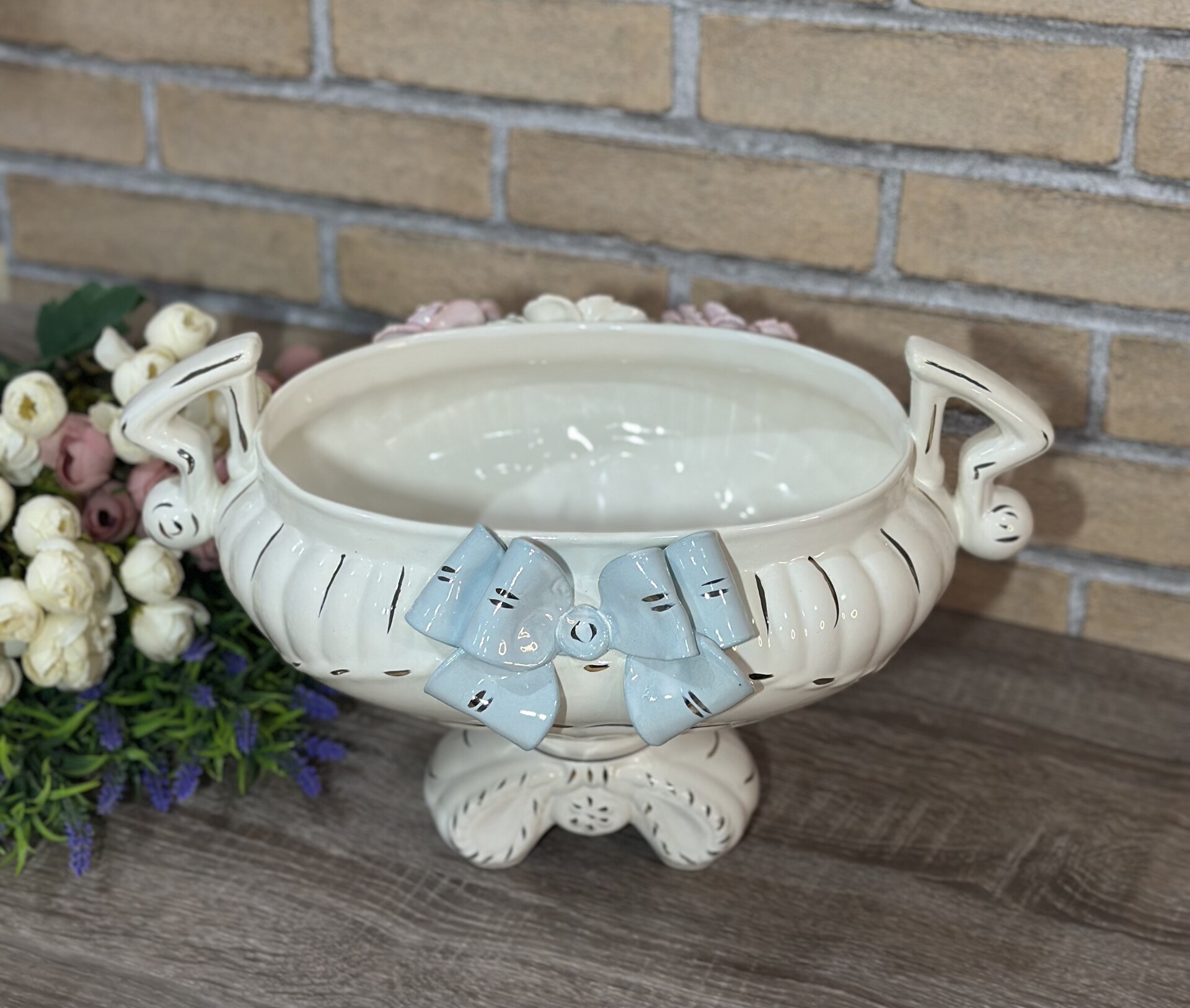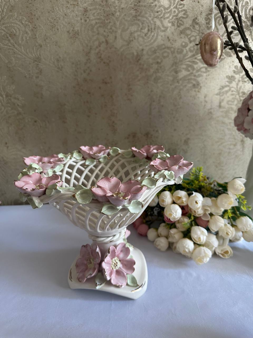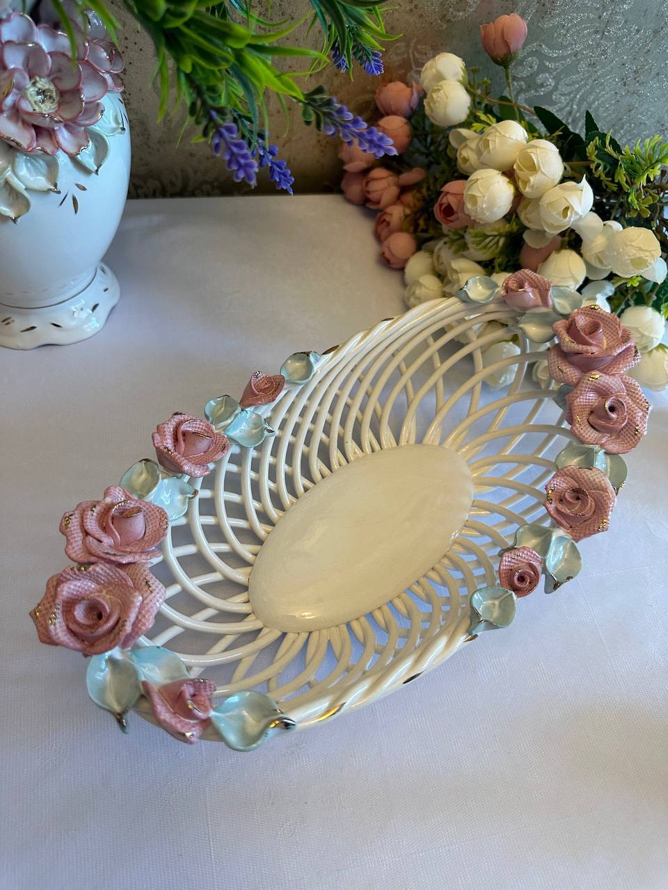 Цукерниця "Флорія" з елементами ручної роботи- справжній витвір мистецтва, створений з душею та натхненням. Ця фруктовниця стане вишуканою прикрасою вашого столу, надаючи йому ніжності та витонченості.