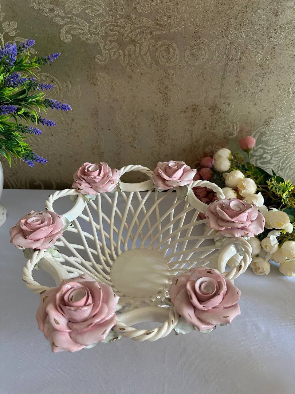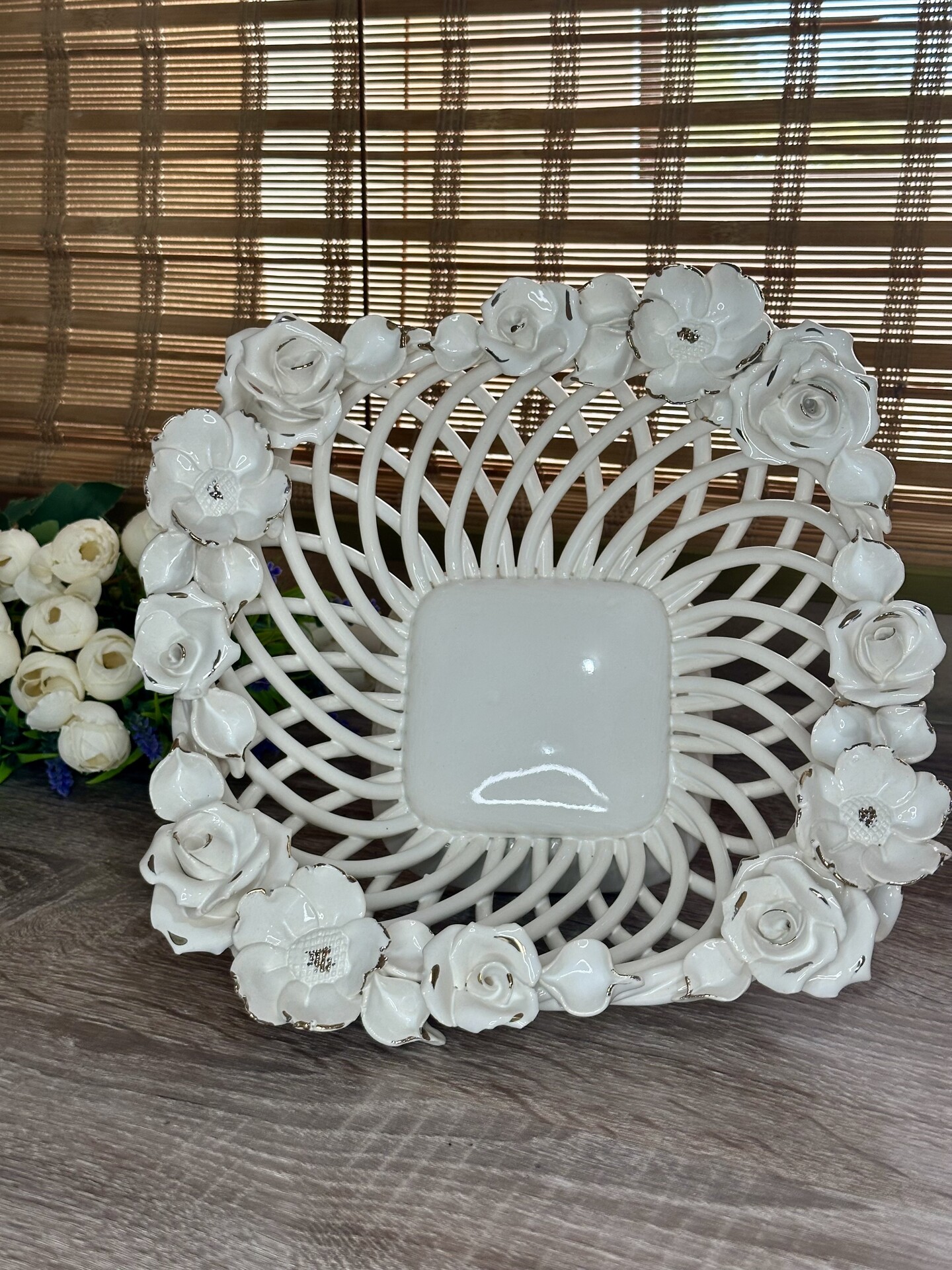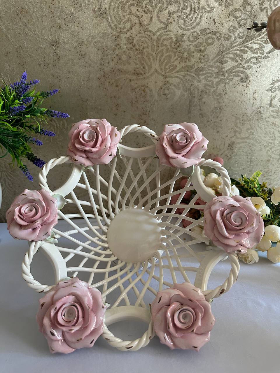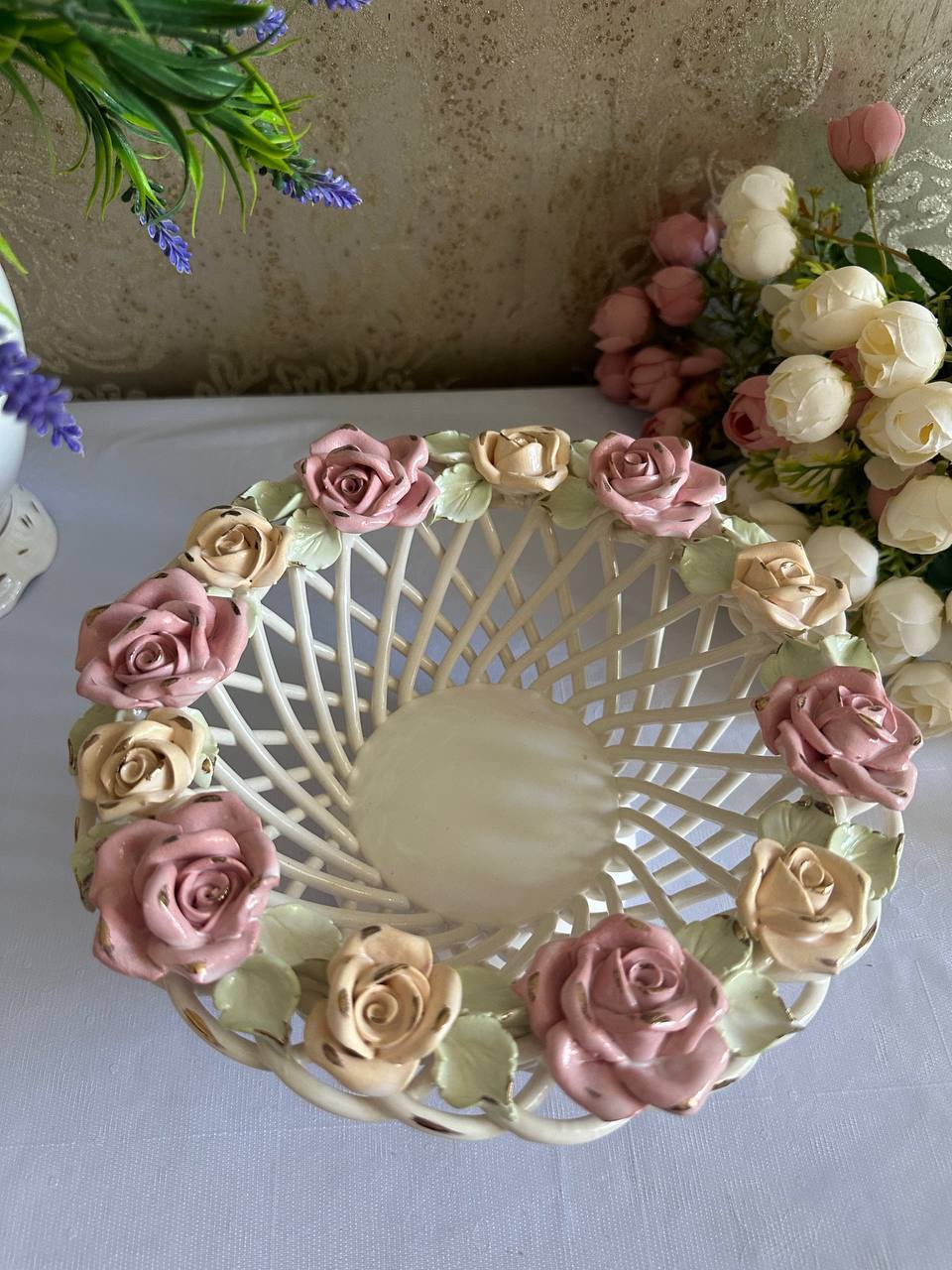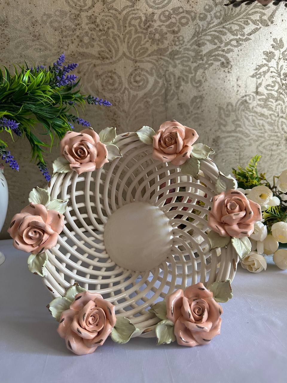 Цукерниця "Флорія" з елементами ручної роботи- справжній витвір мистецтва, створений з душею та натхненням. Ця фруктовниця стане вишуканою прикрасою вашого столу, надаючи йому ніжності та витонченості.