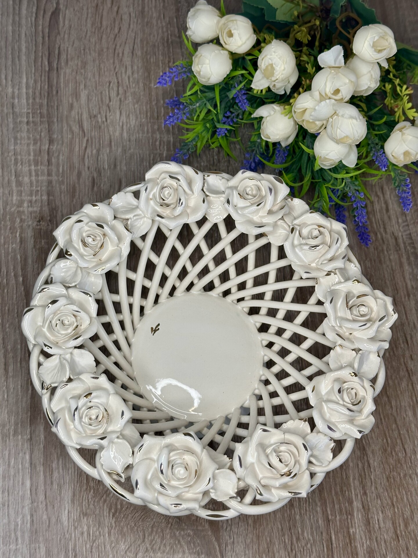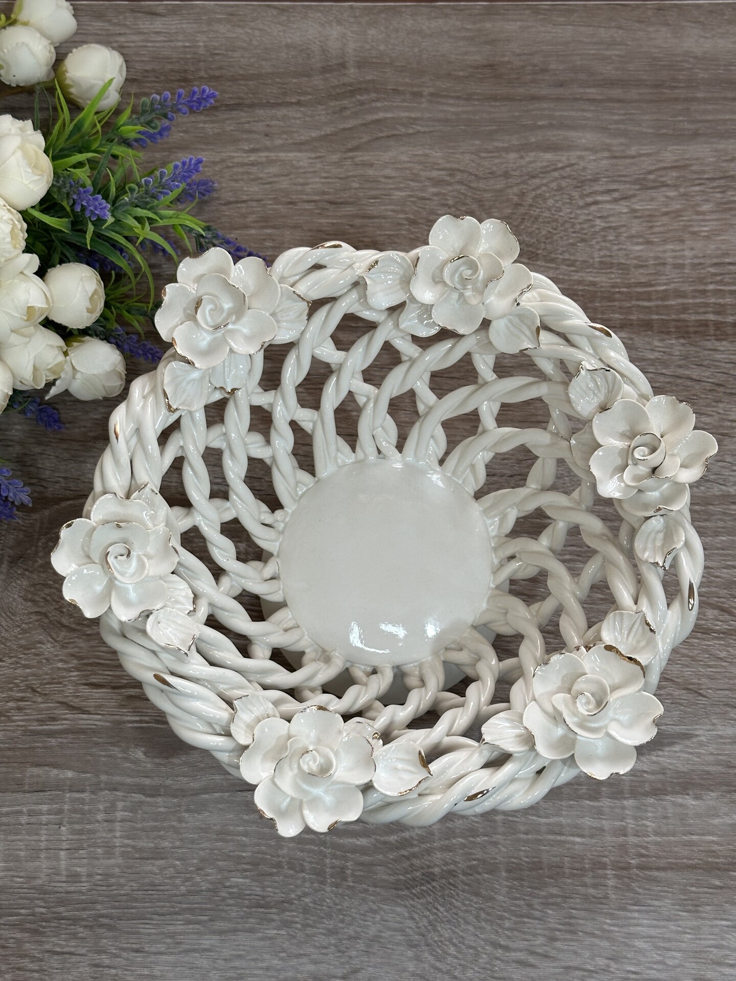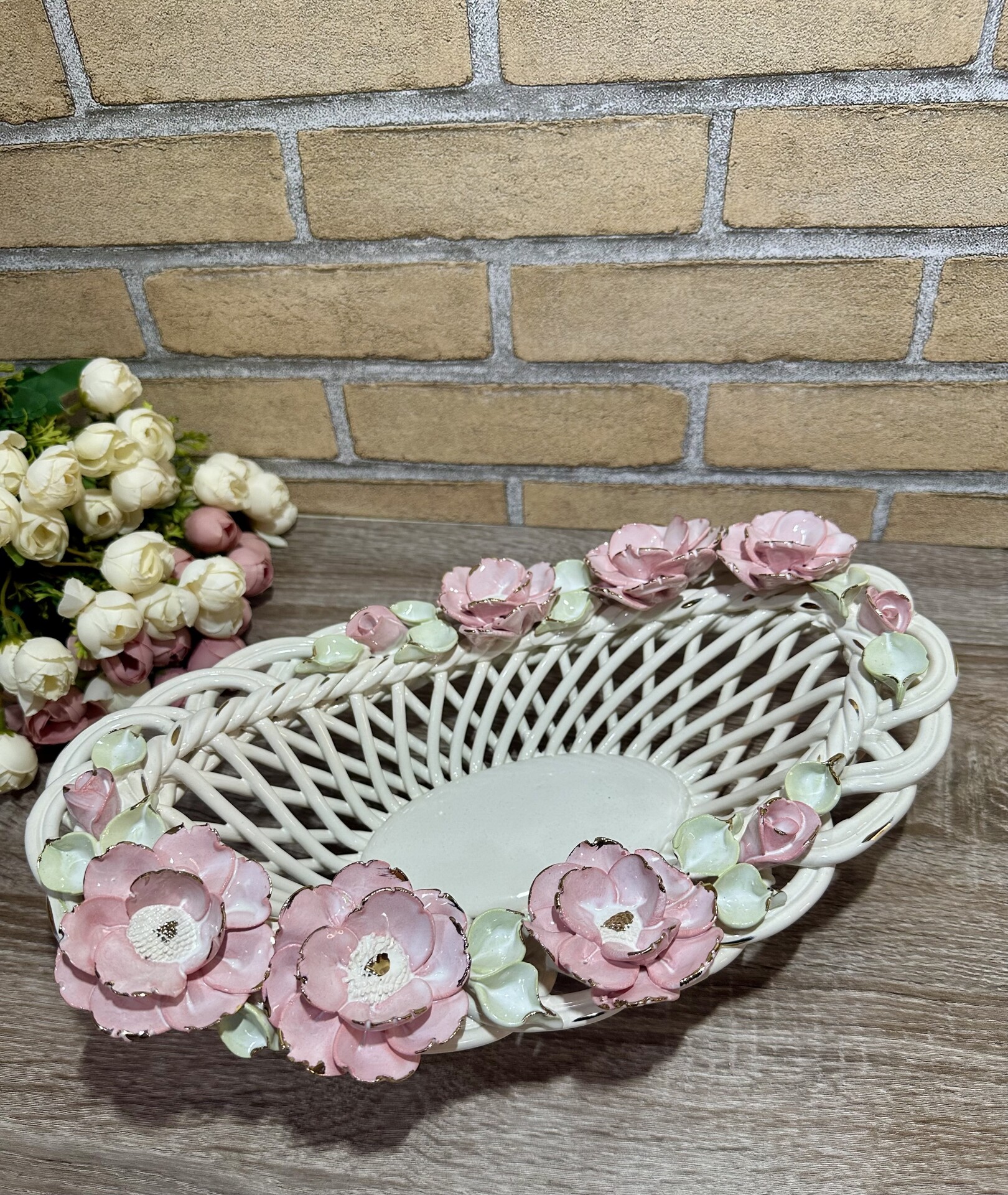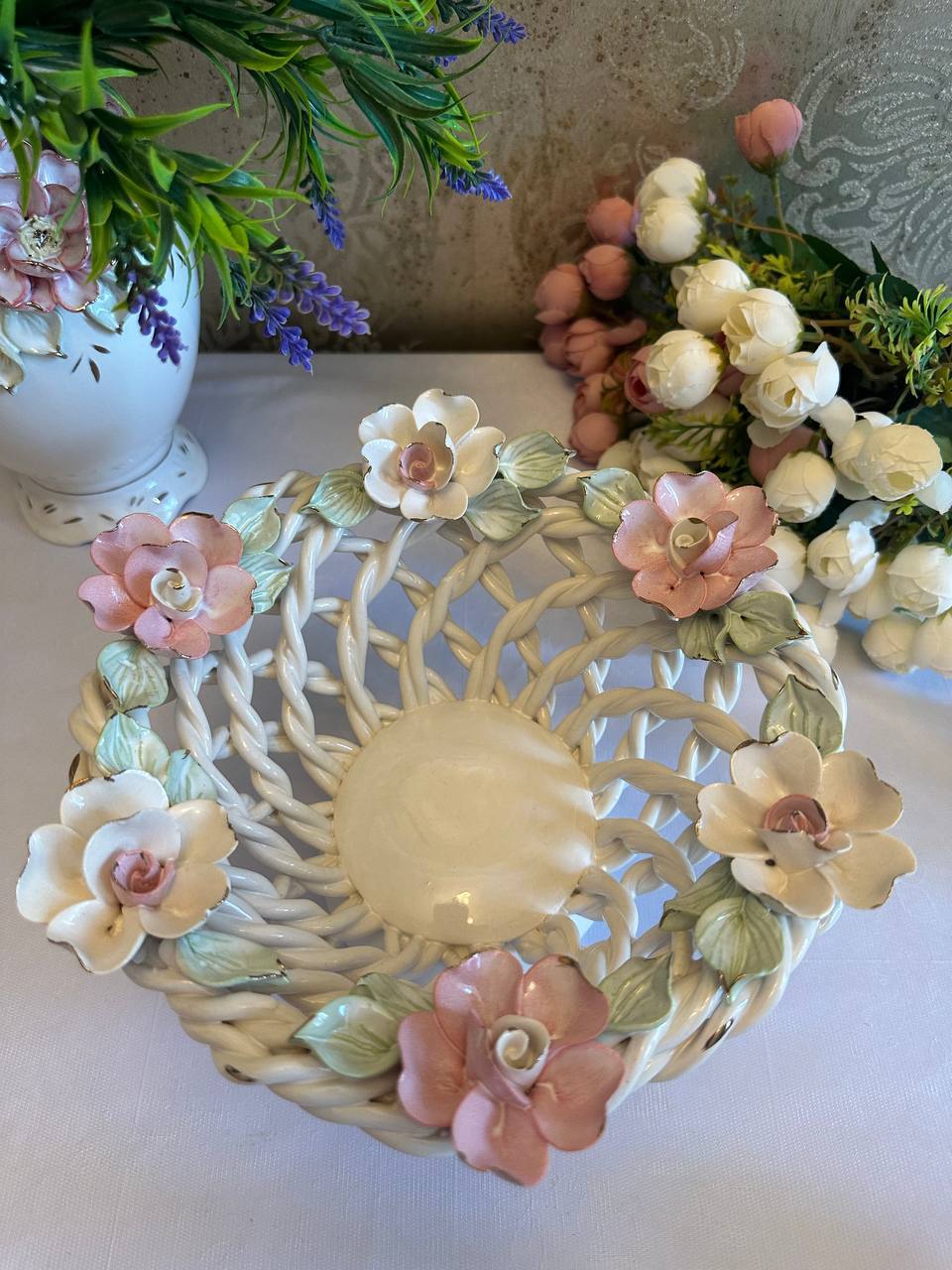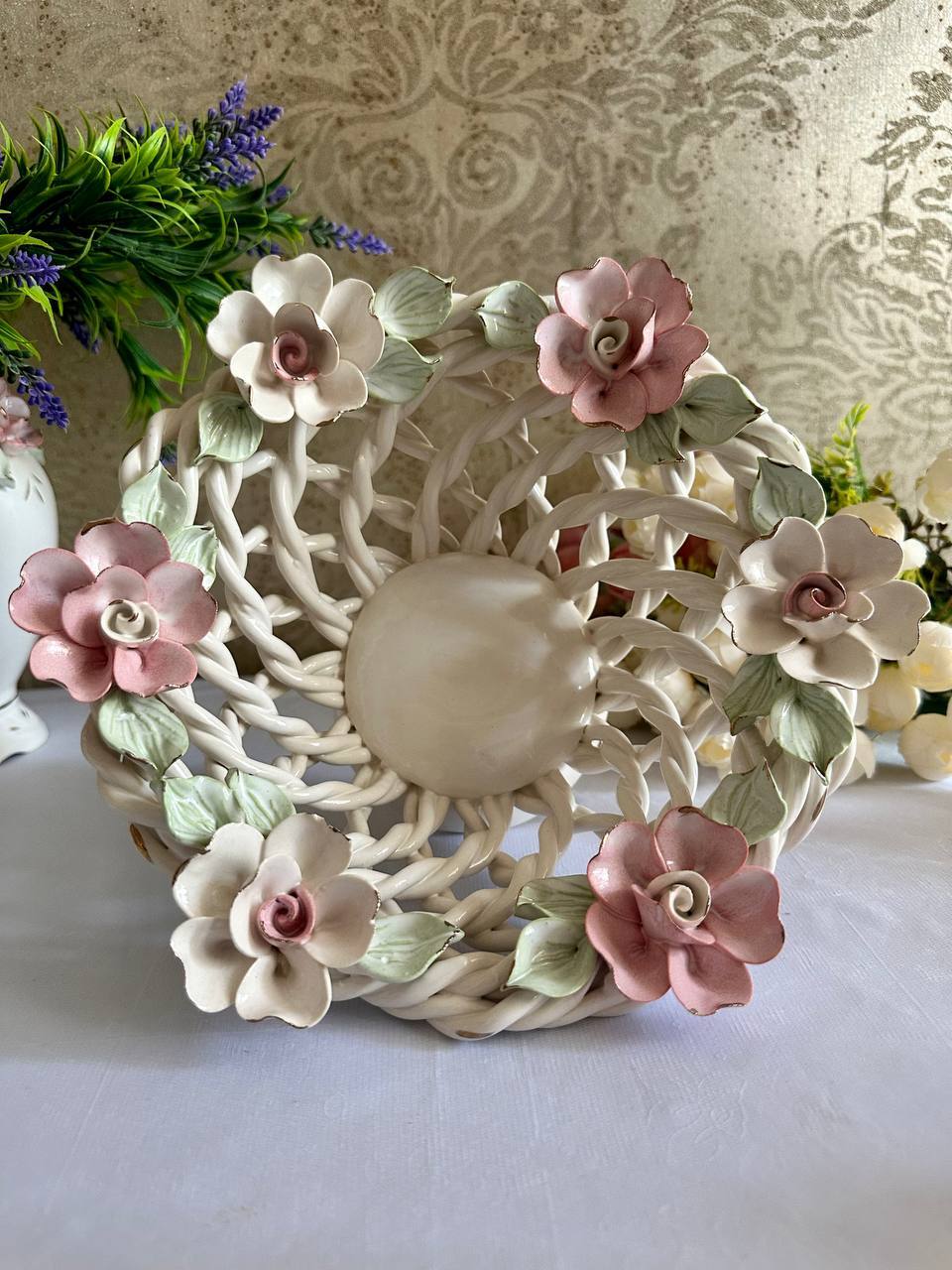 Цукерниця "Флорія" з елементами ручної роботи- справжній витвір мистецтва, створений з душею та натхненням. Ця фруктовниця стане вишуканою прикрасою вашого столу, надаючи йому ніжності та витонченості.