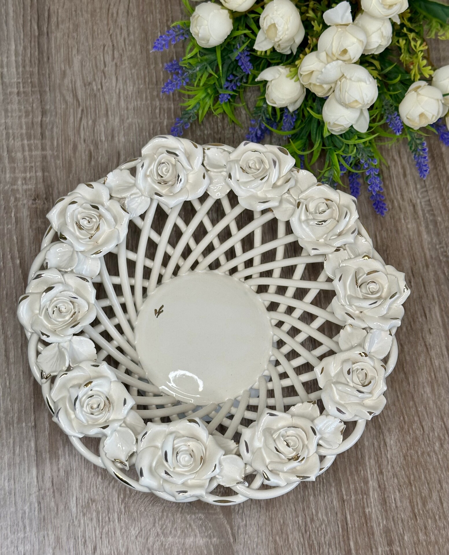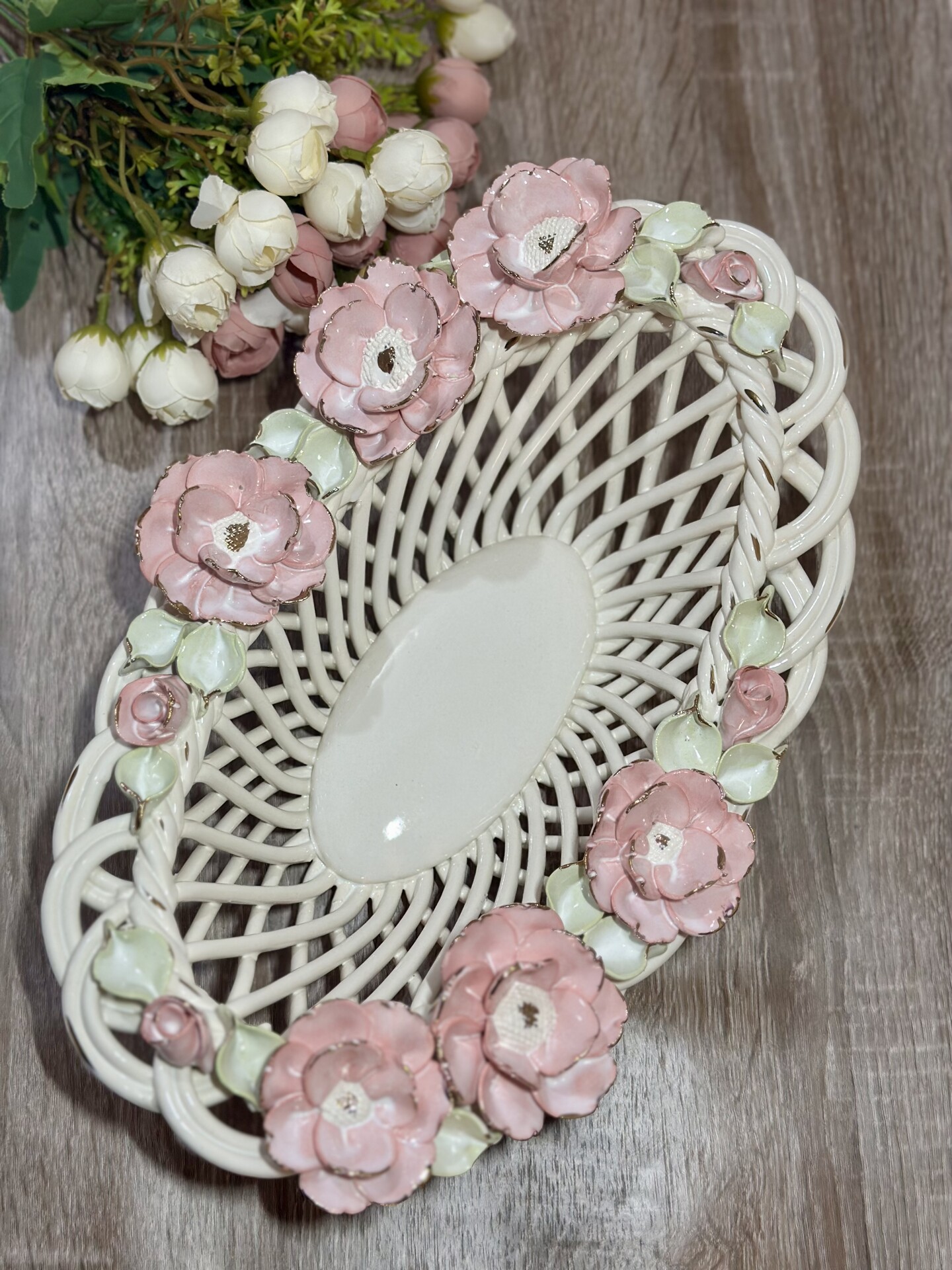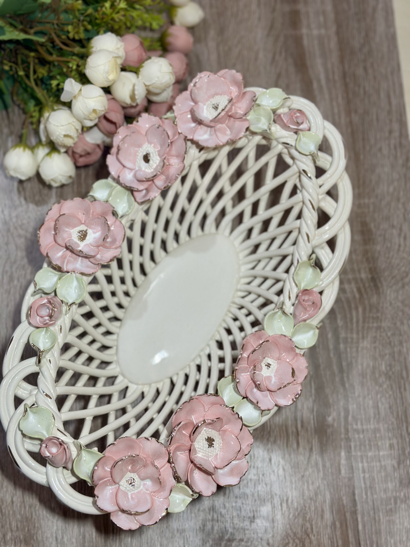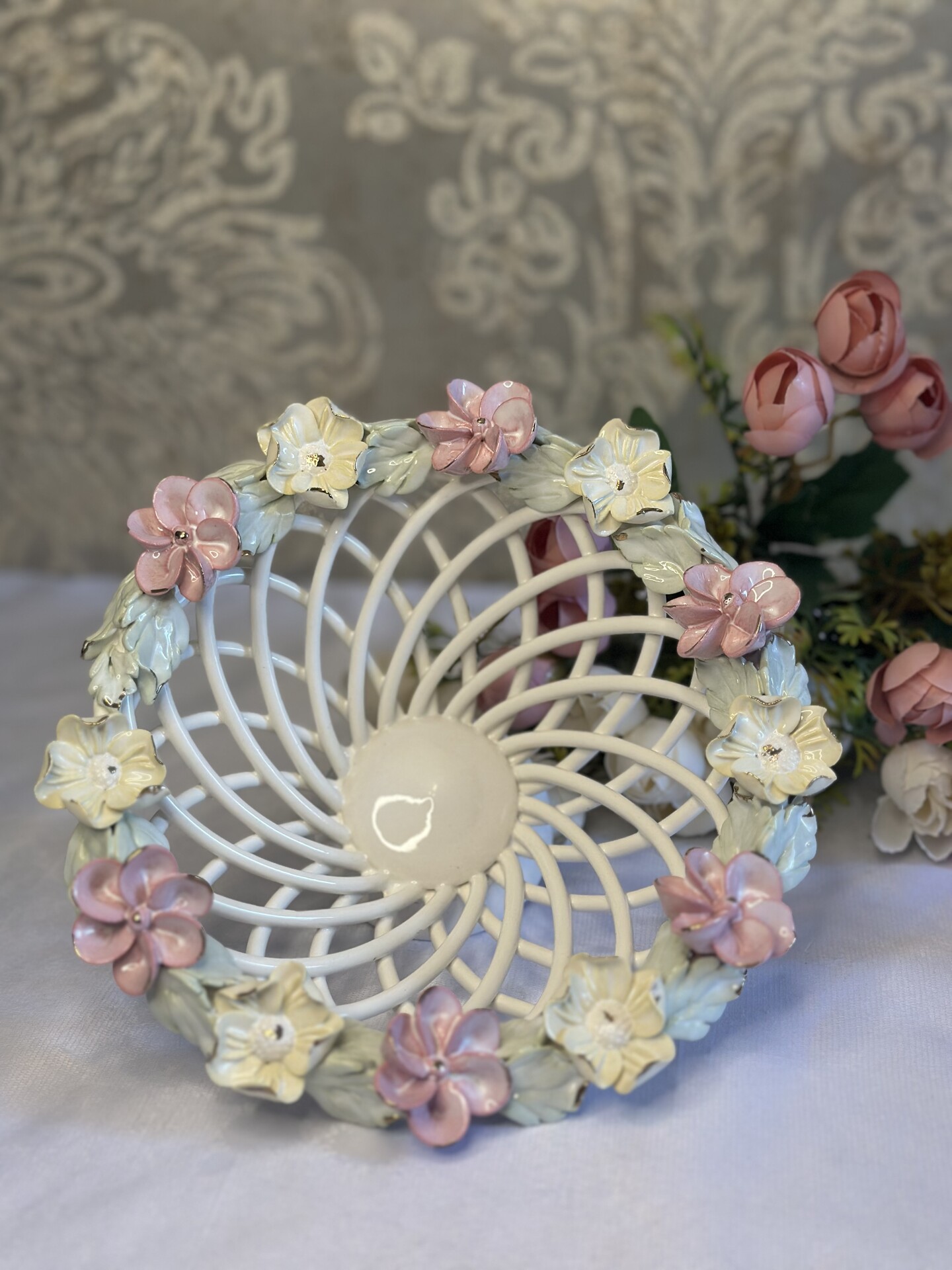 Цукерниця "Флорія" з елементами ручної роботи- справжній витвір мистецтва, створений з душею та натхненням. Ця фруктовниця стане вишуканою прикрасою вашого столу, надаючи йому ніжності та витонченості.