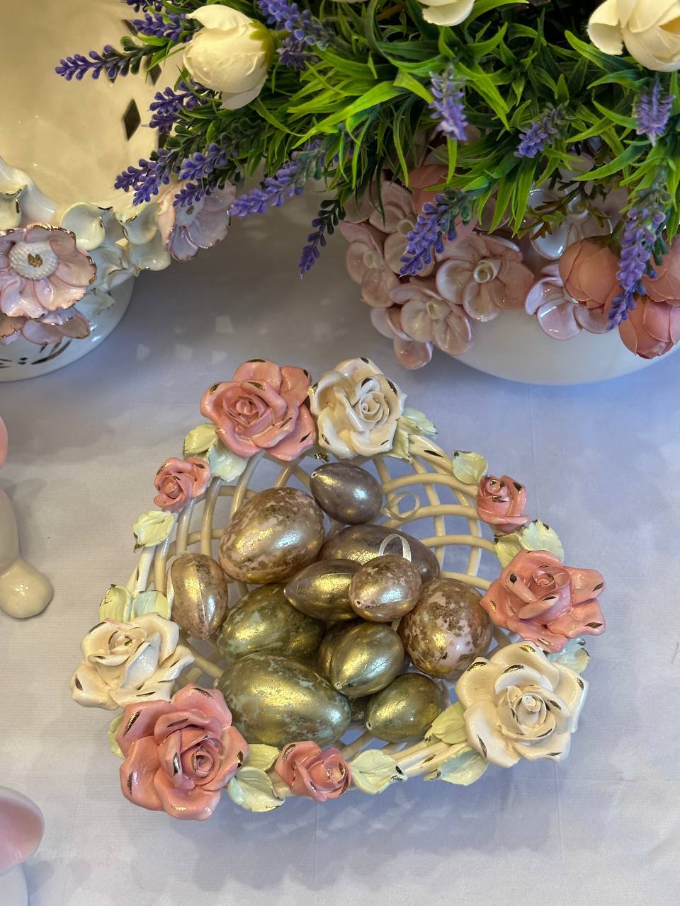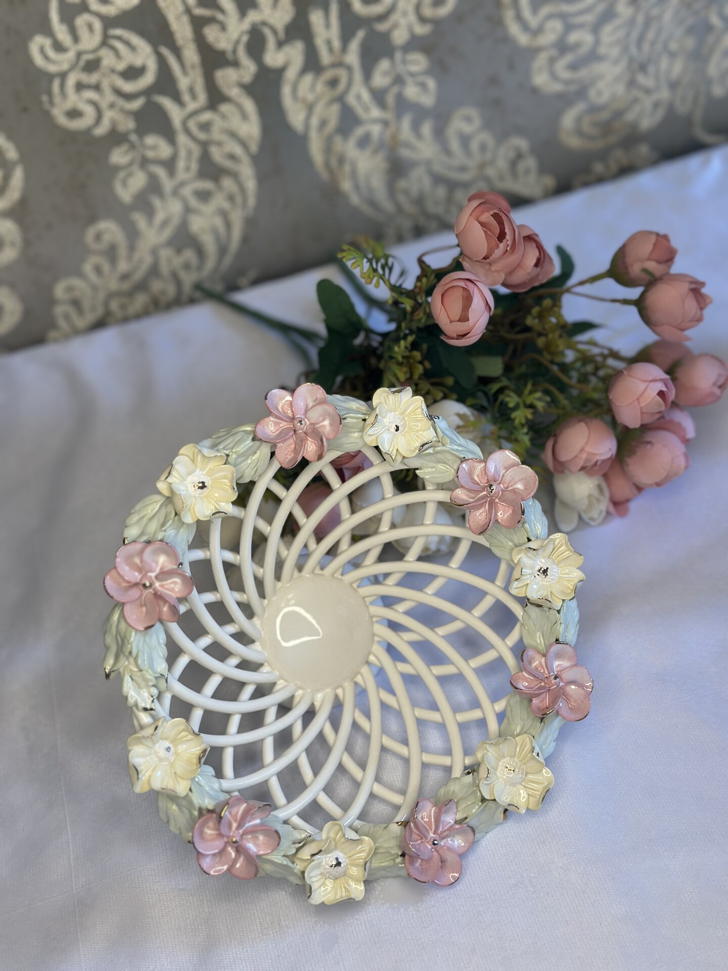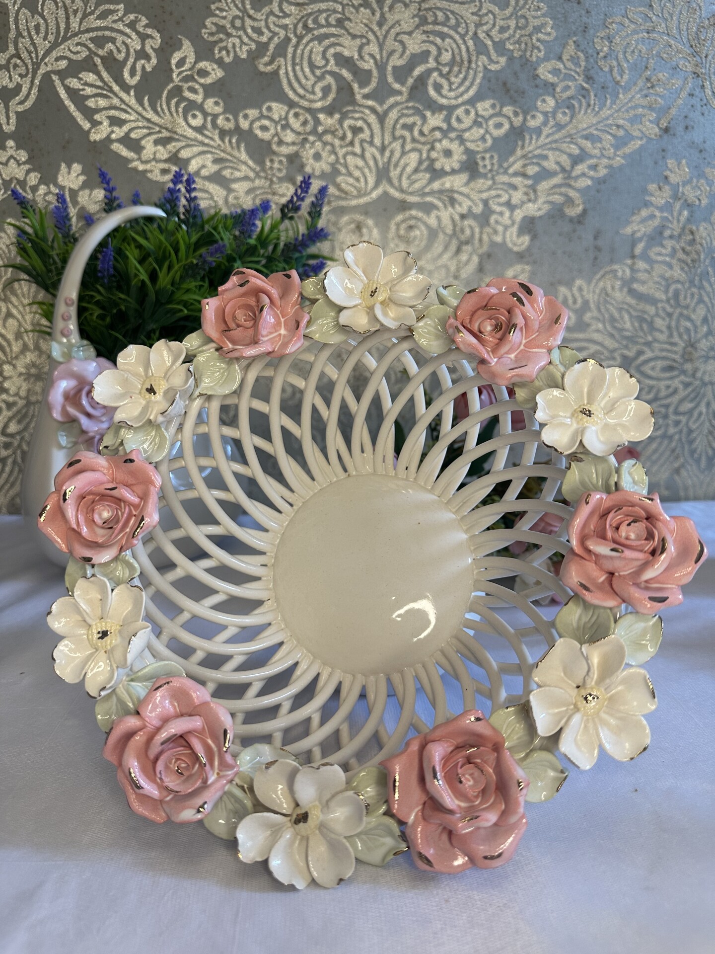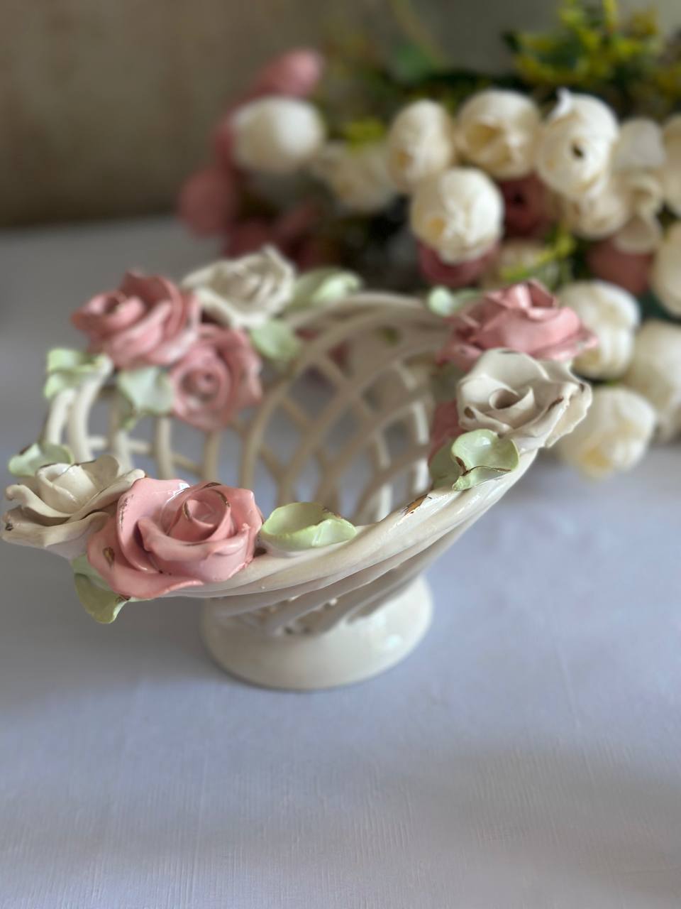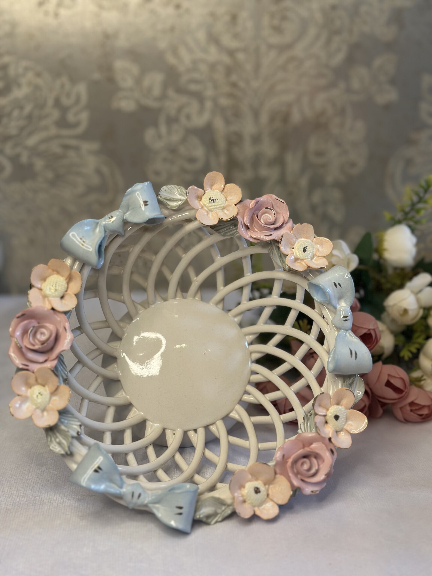 Цукерниця "Флорія" з елементами ручної роботи- справжній витвір мистецтва, створений з душею та натхненням. Ця фруктовниця стане вишуканою прикрасою вашого столу, надаючи йому ніжності та витонченості.