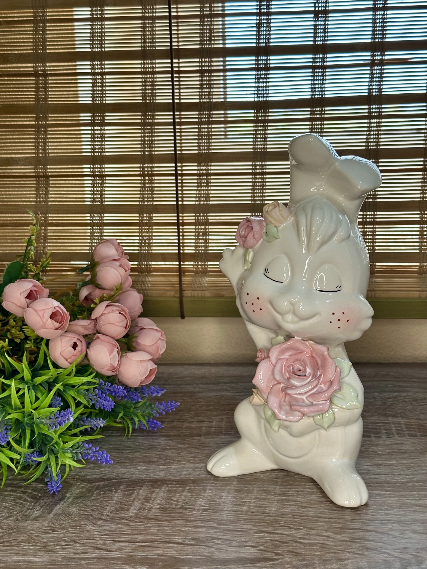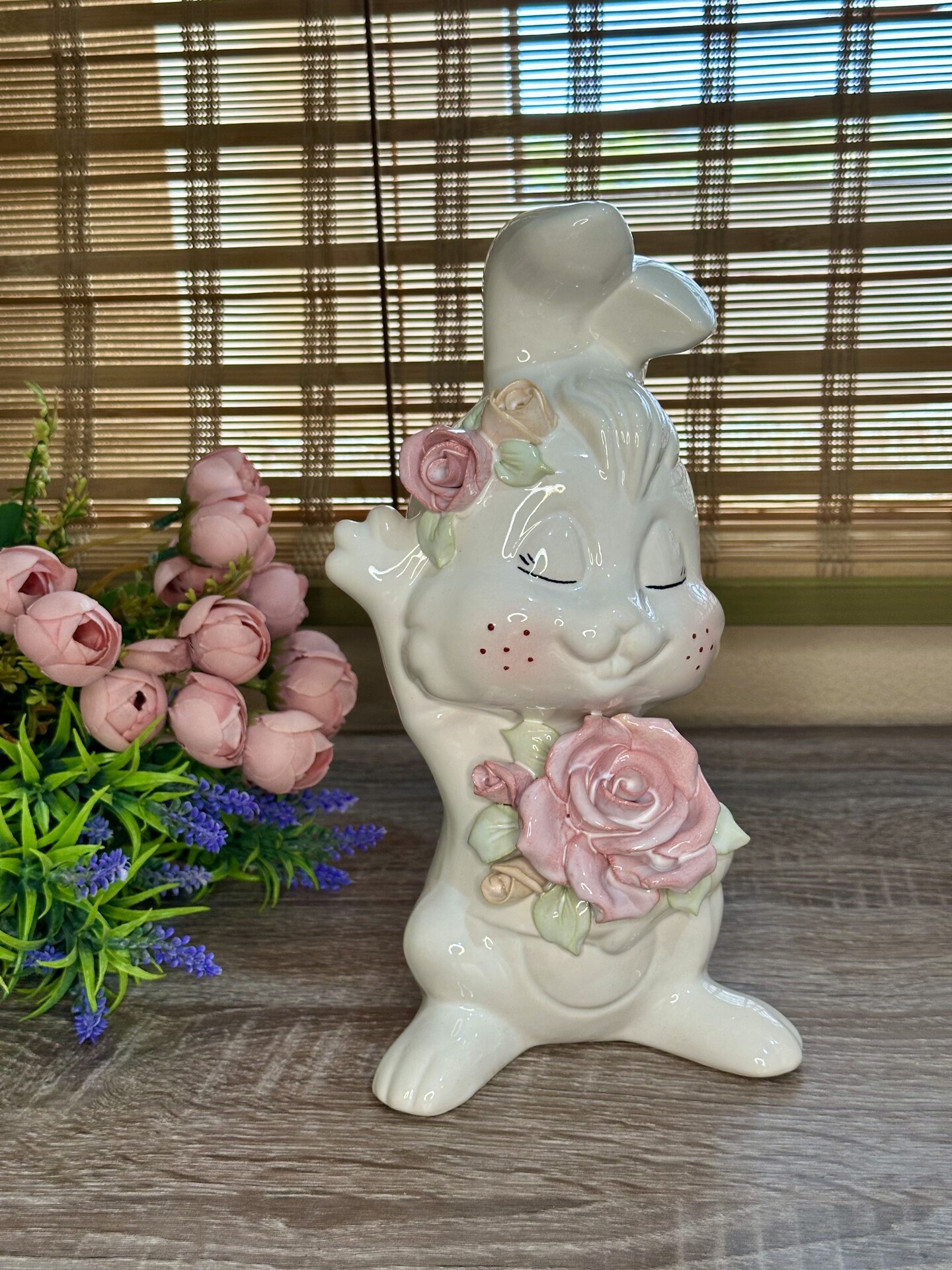 Цей милий зайчик стане чудовим подарунком для близьких або оригінальним елементом декору вашого дому. Його можна розмістити на полиці, столі чи комоді, створюючи затишну атмосферу.