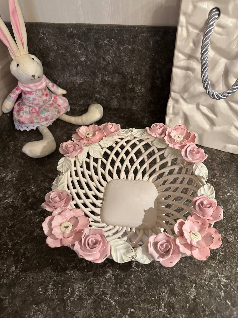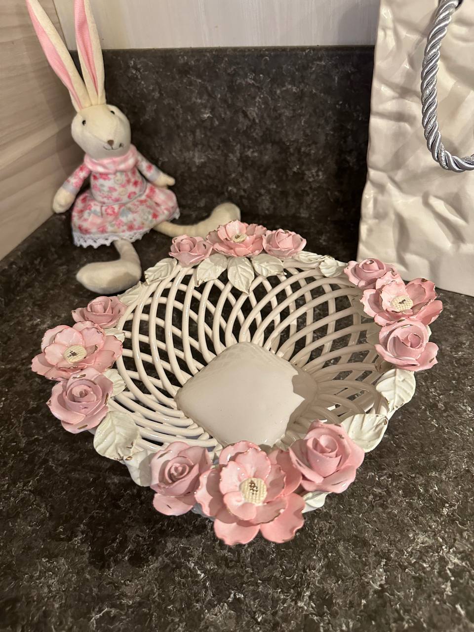 Кошик-Фруктовниця "Казка" з елементами ручної роботи- справжній витвір мистецтва, створений з душею та натхненням. Ця фруктовниця стане вишуканою прикрасою вашого столу, надаючи йому ніжності та витонченості.