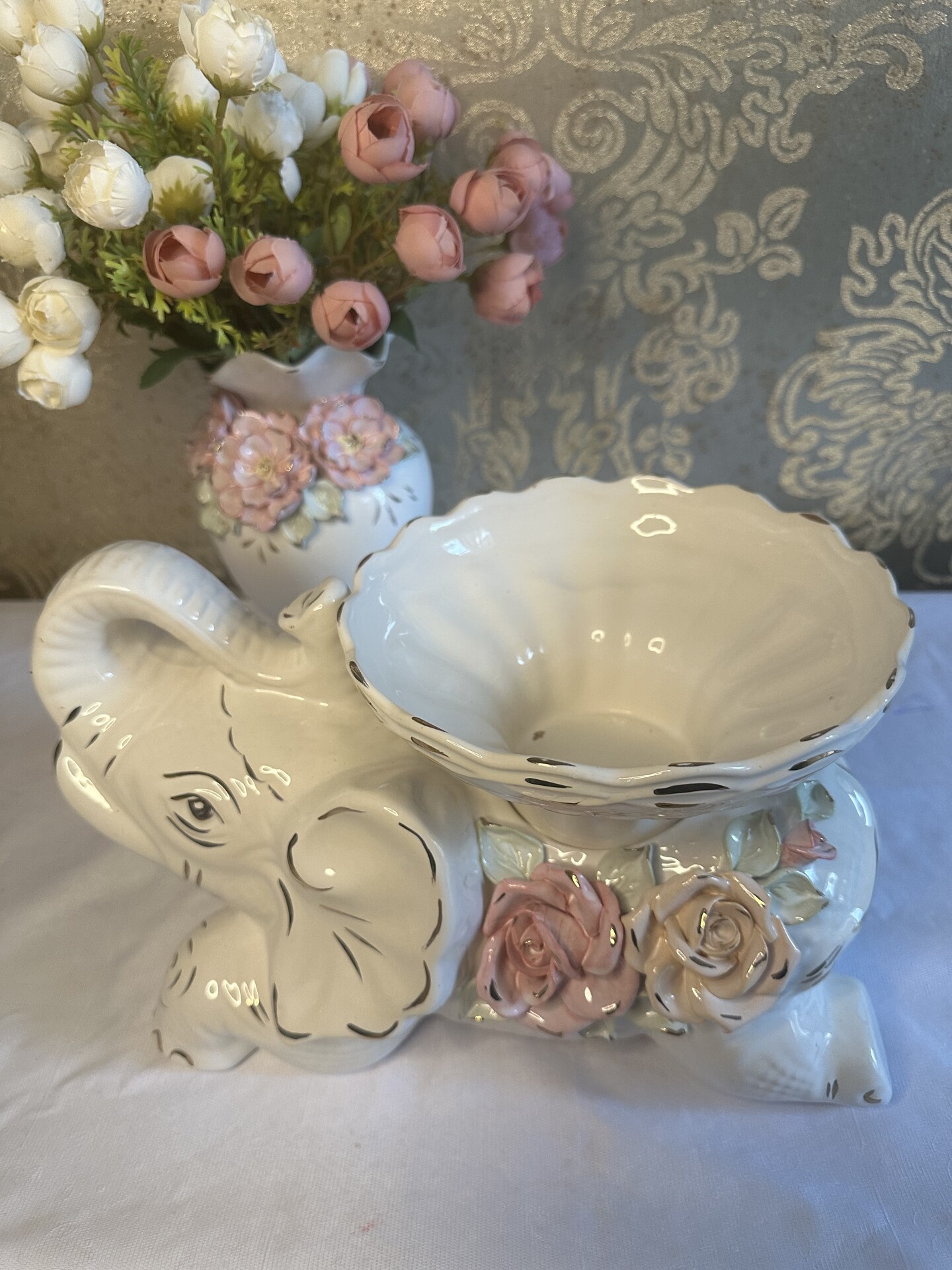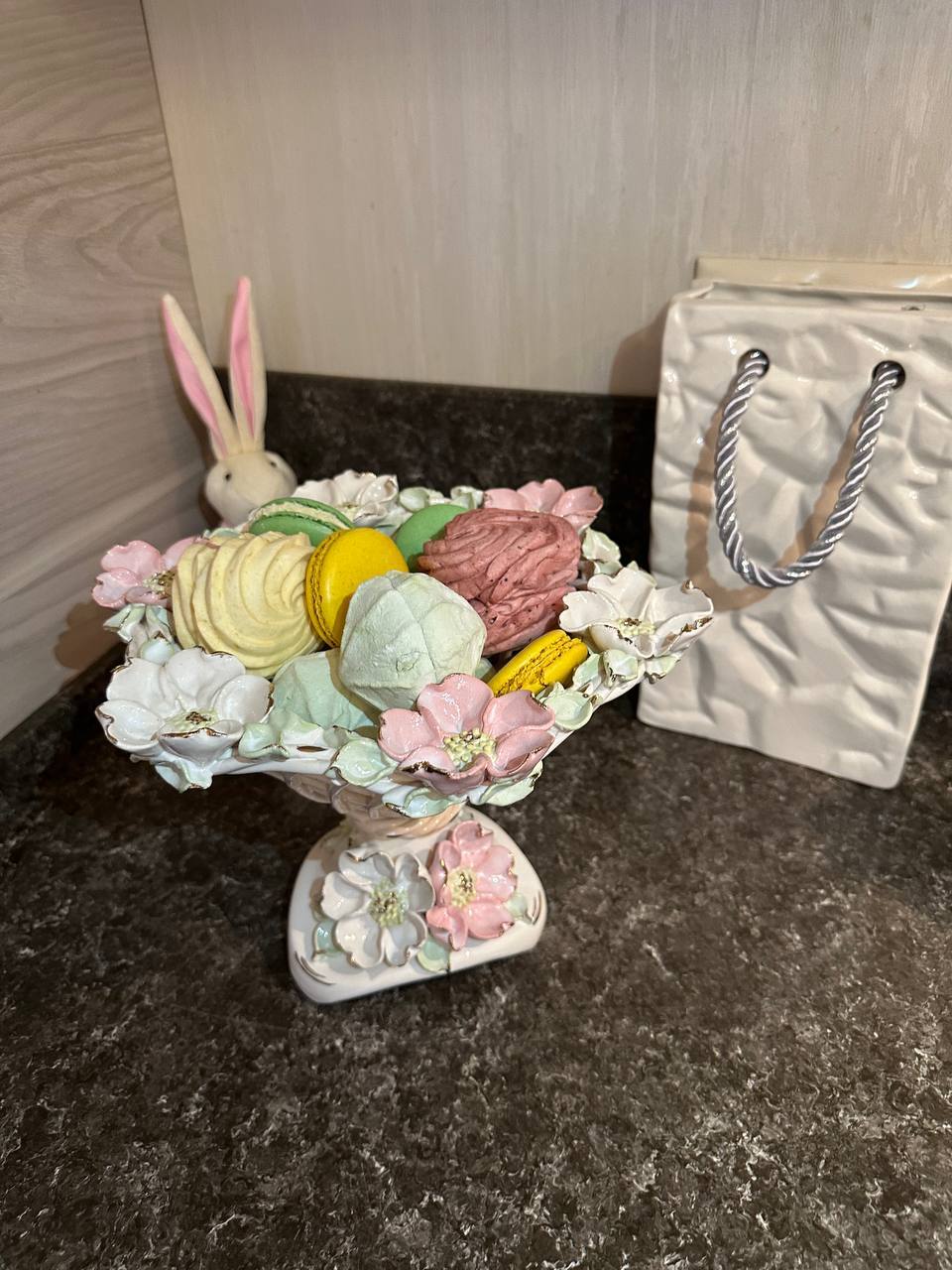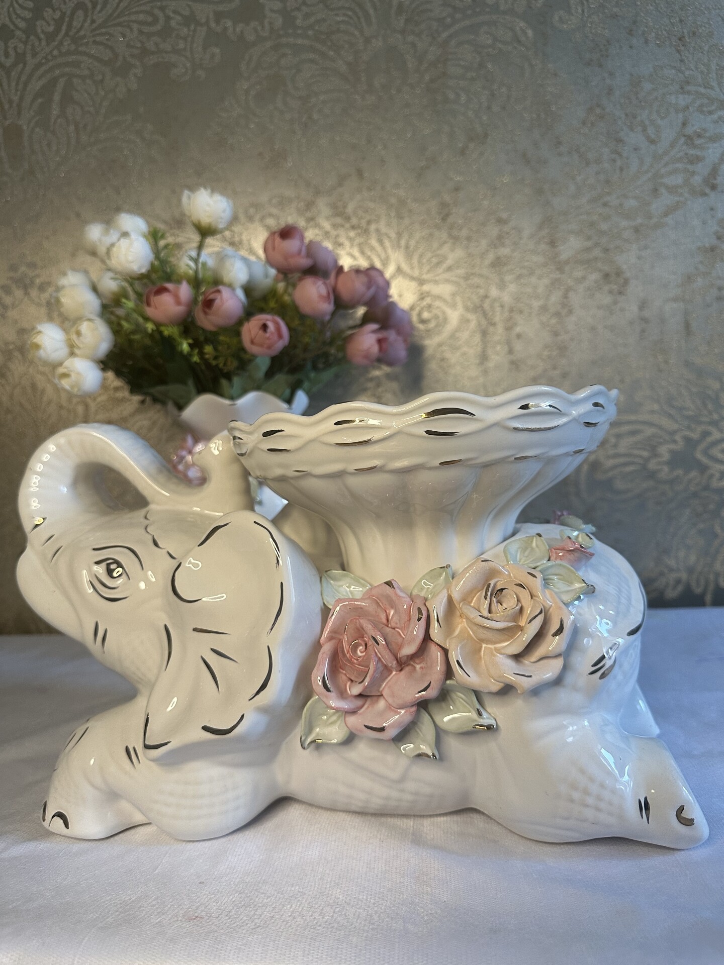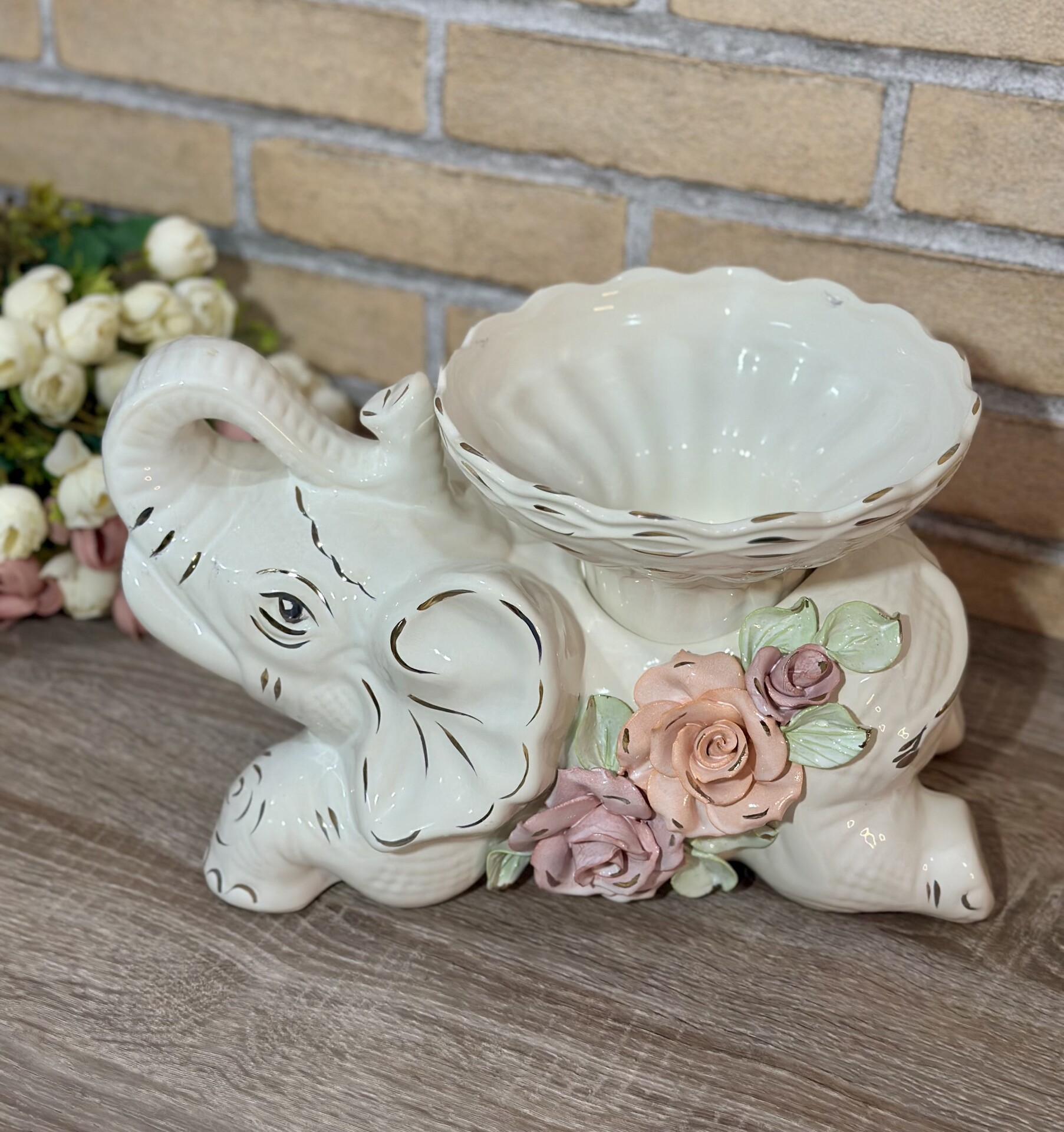 Фруктовниця "Слоненя" з елементами ручної роботи- справжній витвір мистецтва, створений з душею та натхненням. Ця фруктовниця стане вишуканою прикрасою вашого столу, надаючи йому ніжності та витонченості