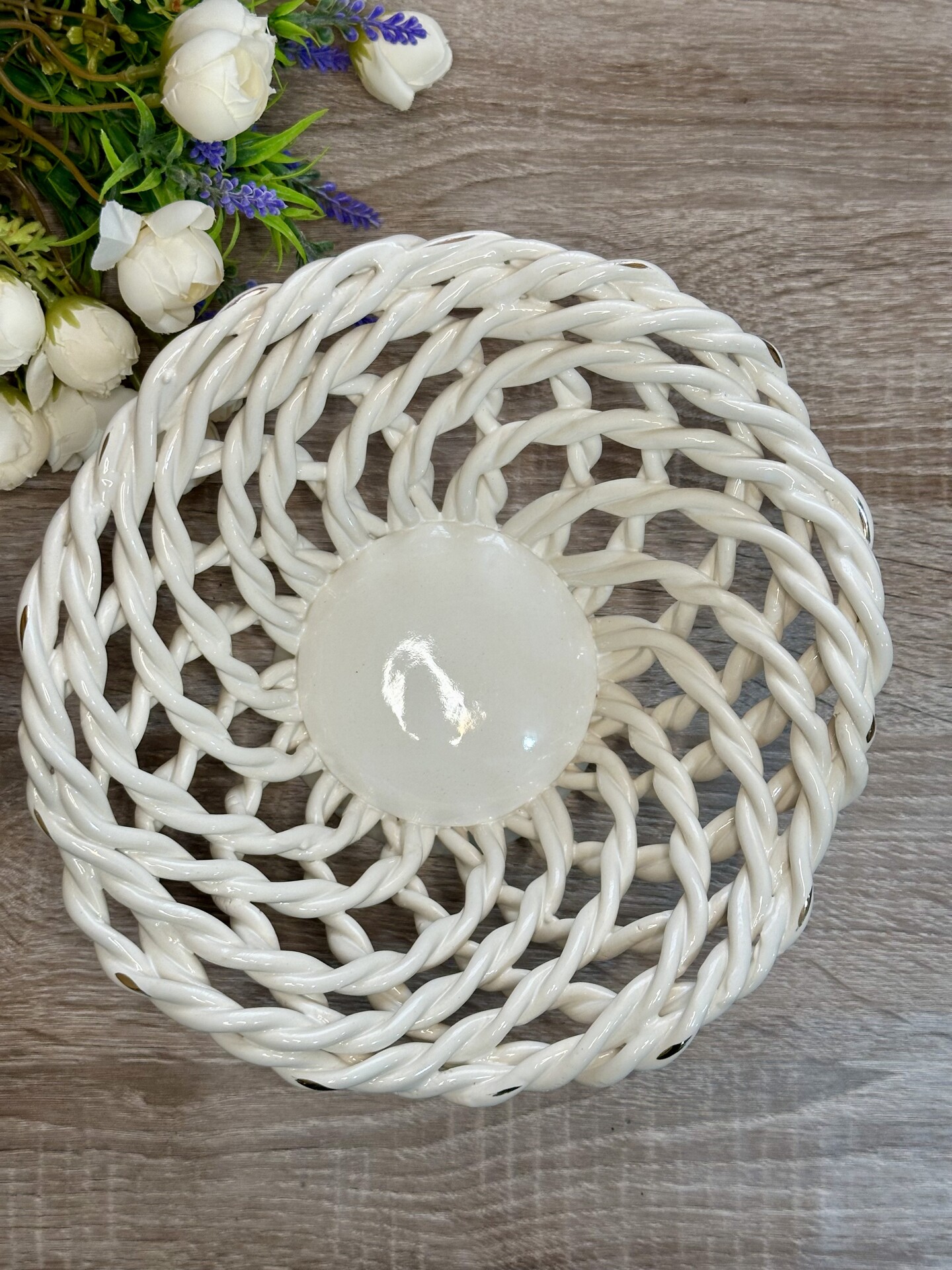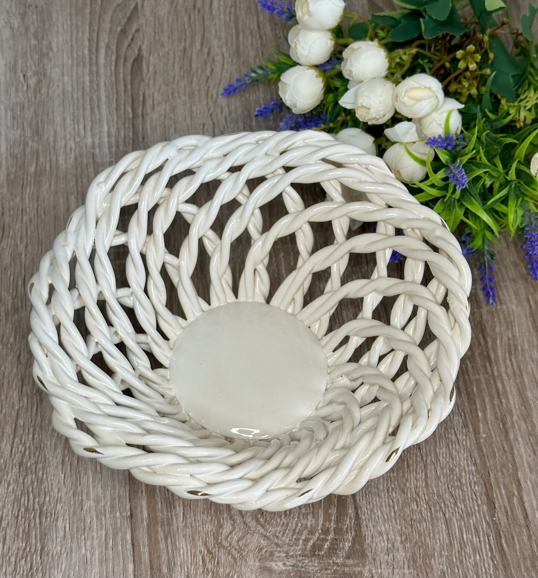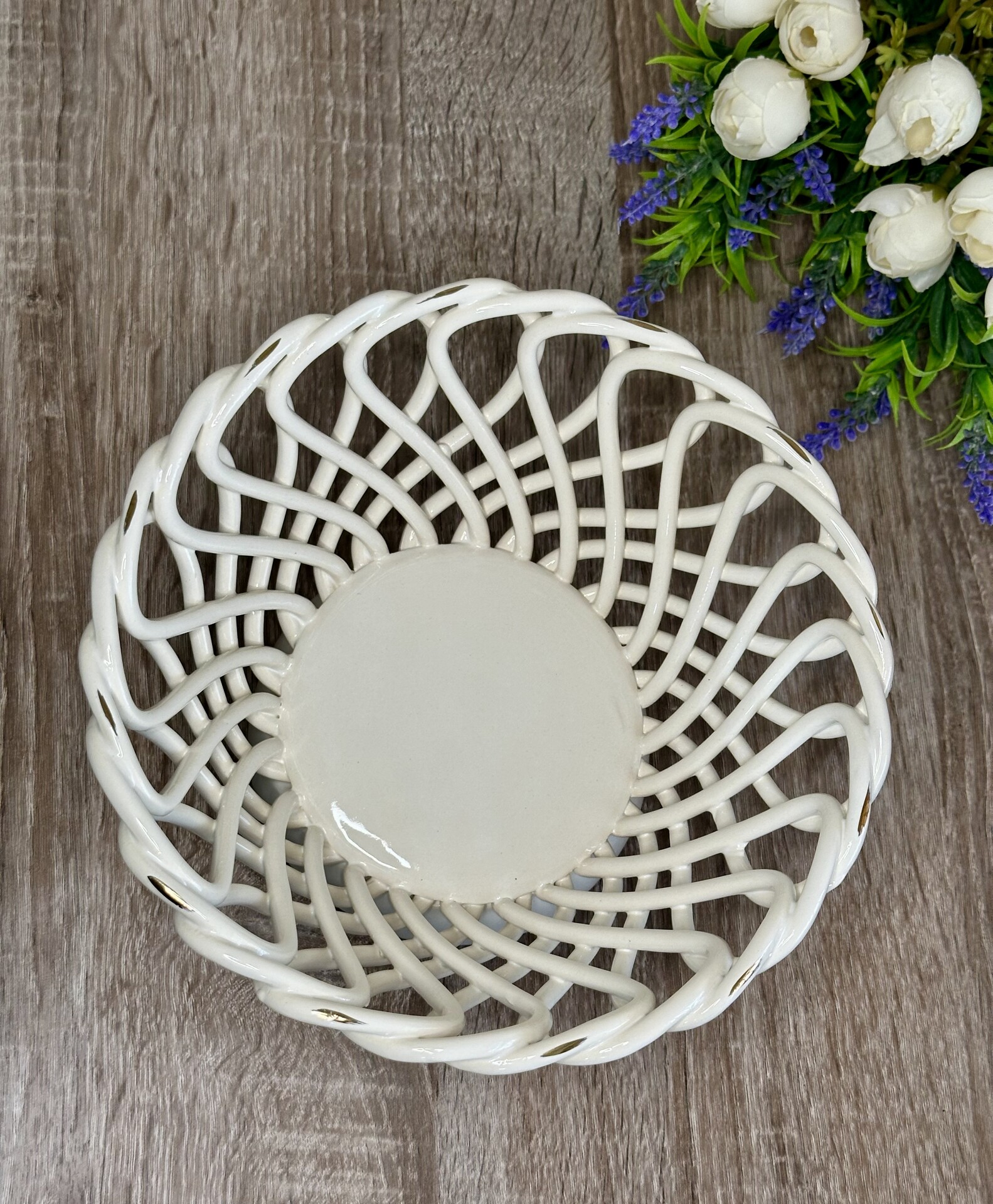 Кошик-цукерниця "Пелюсток" з елементами ручної роботи- витончений та функціональний елемент декору, створений для того, щоб стати центральною прикрасою вашого столу.