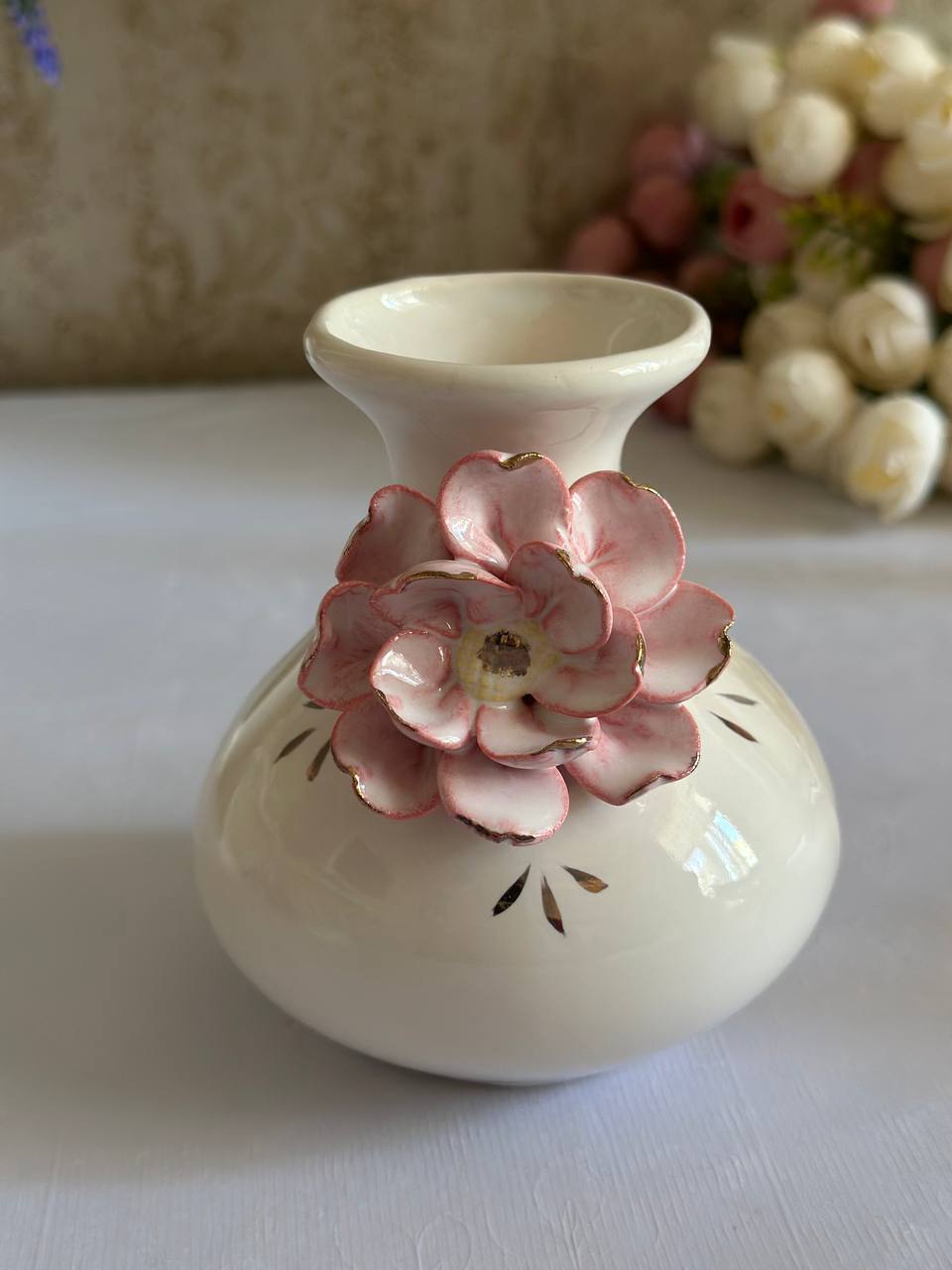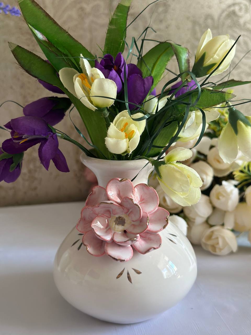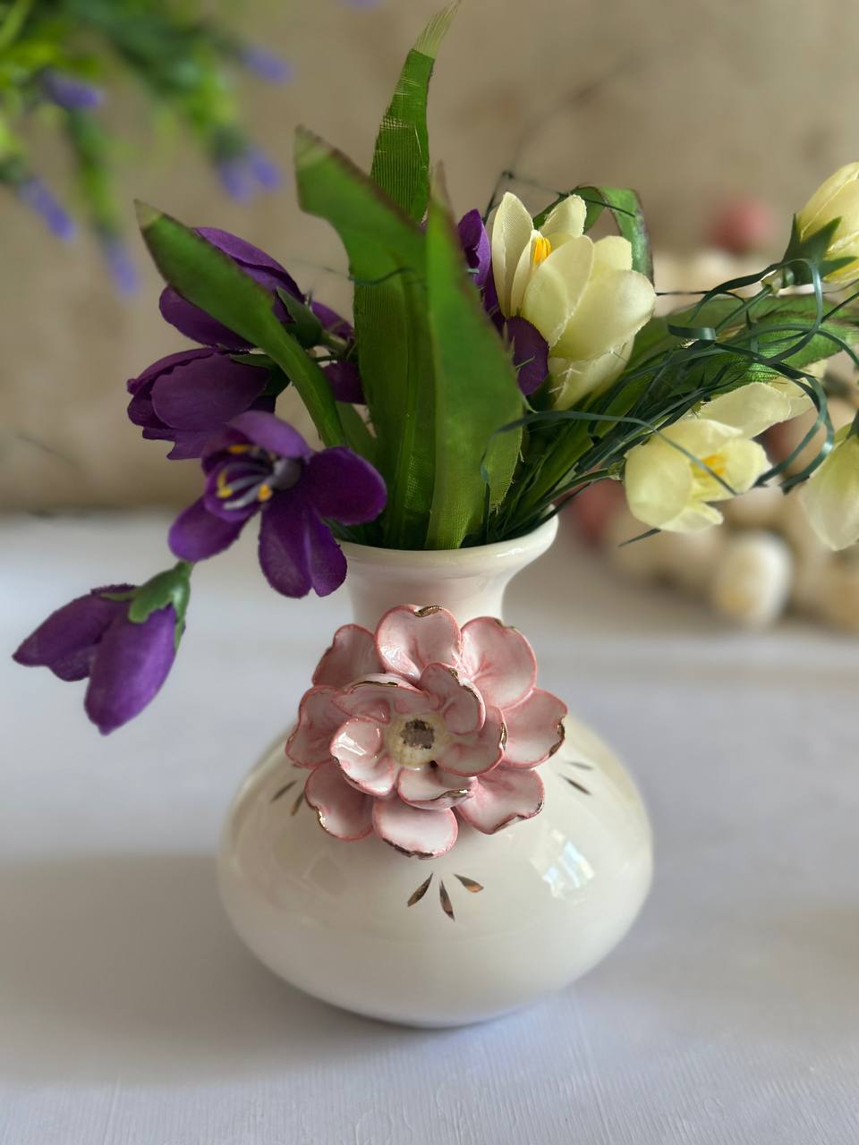 Така ваза ручної роботи -це справжній витвір мистецтва, створений з душею та натхненням. Вона стане вишуканою прикрасою вашого дому, надаючи йому ніжності та витонченості.