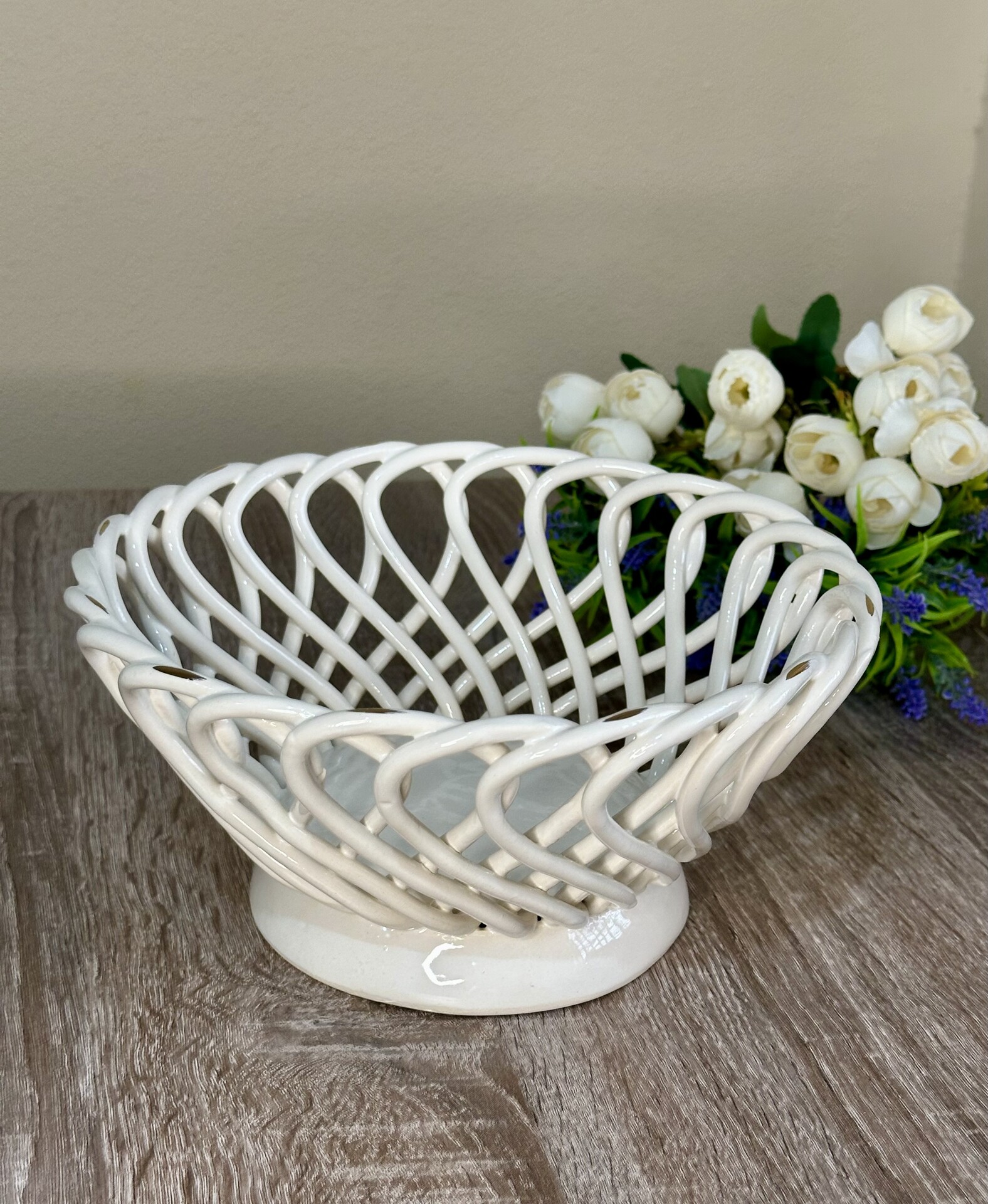 Фруктовниця ручної роботи- справжній витвір мистецтва, створений з душею та натхненням. Ця фруктовниця стане вишуканою прикрасою вашого столу, надаючи йому ніжності та витонченості.